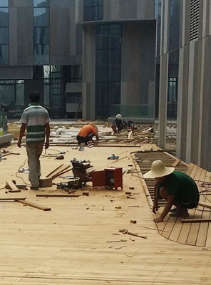 木質(zhì)座椅打造一片休憩的空間,布藝的抱枕,溫馨的燈光,給人內(nèi)心充盈的舒適和溫暖感覺(jué)!置身其中,放松心情,整個(gè)人都沉靜下來(lái)!自家若有個(gè)大庭院,木平臺(tái)的規(guī)劃讓花園更具人文氣息,木地板、木柵欄、木樓梯、木亭廊……起到藝術(shù)的裝飾作用,同時(shí)布置一些照明燈具,夜晚的庭院更顯沉穩(wěn)和品味。 防腐木產(chǎn)品誰(shuí)來(lái)施工? 庭院剛施工完成,柳岸木的葡萄架開(kāi)裂了?  開(kāi)車去現(xiàn)場(chǎng)看了一下,做好的葡萄架木質(zhì)很松、裂口很大,可以確定開(kāi)裂的原因:用的不是柳桉而是松木的一種,但是具體是哪一類松木也分辨不出來(lái),裂縫產(chǎn)生主要原因是木頭沒(méi)有烘干,含的水分很多,經(jīng)過(guò)風(fēng)吹日曬,木頭中的水分蒸發(fā)發(fā)生收縮變形而產(chǎn)生裂縫,把木頭換掉基本是不可能了,唯一的解決辦法就是等裂縫穩(wěn)定以后用膩?zhàn)犹顫M重新做油漆?! ∈虑榻鉀Q了,正好業(yè)主也在,就問(wèn)他簡(jiǎn)單溝通了下,了解了一下情況,幫他做花園的是找上門來(lái)的一個(gè)施工隊(duì),柳桉防腐木地板3公分厚280元/平方,葡萄架報(bào)價(jià)500元/平方,就業(yè)主算了一筆賬,正宗柳桉木現(xiàn)在市場(chǎng)價(jià)按5000元一立方計(jì)算,不算損耗,一立方可以做33個(gè)平方地板,每平方是150元,木工安裝費(fèi)市場(chǎng)行情是60元/平方,油漆30元/平方,加上地板下的木楞50元/平方加起來(lái)就是290元/平方,再加上損耗和正常的公司利潤(rùn),280元/平方的柳桉防腐木地板怎么能做的出來(lái)呢